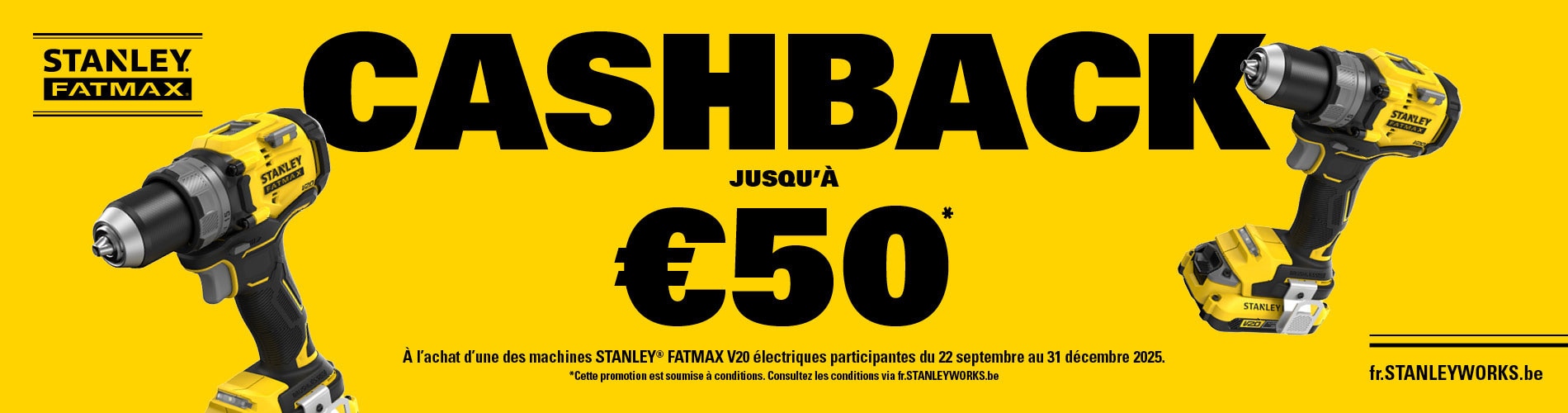 Vous pouvez recevoir jusqu’à 50 € de CASHBACK à l’achat d’outils électriques participants de STANLEY FATMAX.